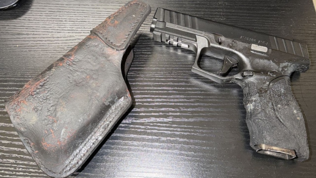 Brett G.’s recent ordeal underscores an uncommon example of gear resilience. After a gasoline explosion destroyed his truck and left him hospitalized for 65 days, investigators discovered that his handgun—carried in a FALCO A122 inside-the-waistband holster—had endured the fire with minimal damage.