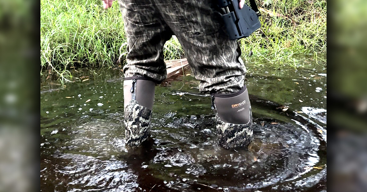 Getting out into the field means having the proper gear. For this trip, light, layered clothing fit the bill, along with a good set of waterproof boots to slog through the wet stuff. For the latter, a pair of Dryshod’s Southland Men’s Hunting Boots did the trick. They kept me comfortable and dry the entire trip.