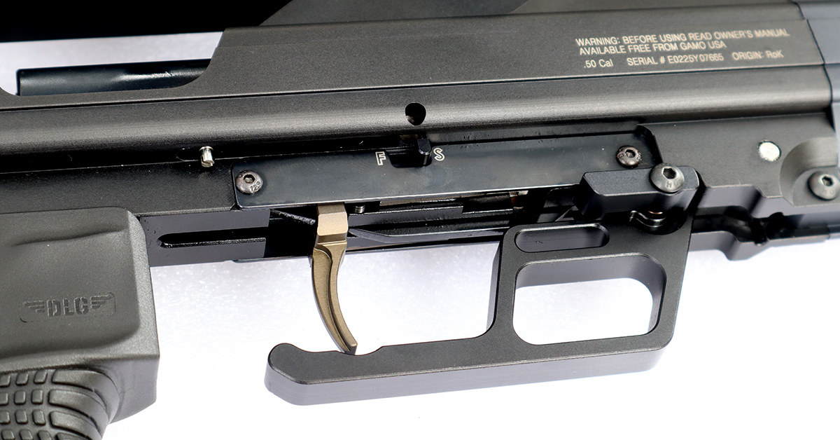 The Gamo TC-50 features an aluminum body that is made up of the main trigger/chamber assembly and a tactical rail system. The 24.80-inch-long barrel is metal-jacketed rifled steel with an attached sound moderator. The action includes a single cocking system (you use the trigger guard to cock the rifle to either half or full power) with a two-stage trigger. The manual safety is a fore/aft slide button on the right side of the rifle that is automatically placed into “SAFE” every time the trigger guard cocking system is actuated. There is also a secondary safety/release that must be manipulated to return to the trigger guard to its closed position.