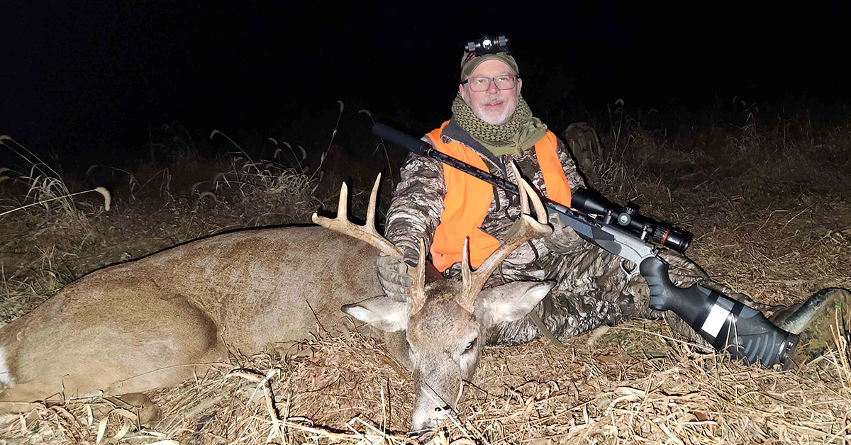 The next evening, my fortune turned around. A nice buck climbed the horizon of a field I was watching with minutes to go before shooting light ended. The 8-point was on the move and offered only a front-quartering shot, which is a difficult one to make because a wee bit off on the shot placement and the bullet can glance away from the vitals.