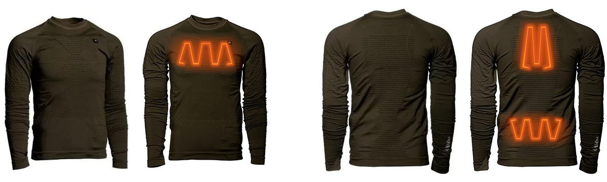 Pnuma bills the IconX series as a heated thermal underwear base layer. Three items are offered in the series: long-sleeve shirt, vest, and pant. They also make a strap-on muff-style handwarmer.