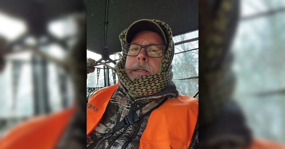 To make matters a little more chilling, in my rush to get in the blind before daybreak, I forgot to take my breakfast and my lunch! So, there was no fuel in the furnace for the entire day. One of my hunting buddies teased me by sending a picture of him gnawing on all kinds of snacks throughout the morning. My only defense was to send him a photo of me chewing on a twig and to ask for mercy. So, yes, I was more than a tad cold and my prospects for the day seemed bleak.