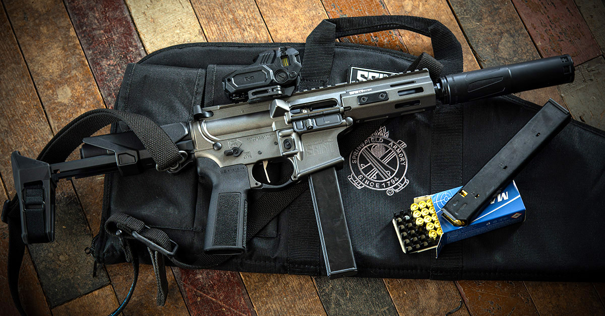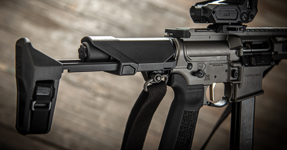 A sure thing for home defense and barrel-of-monkeys fun on the steel range, Springfield’s Saint Victor 5.5″ PDW 9mm is no novelty firearm