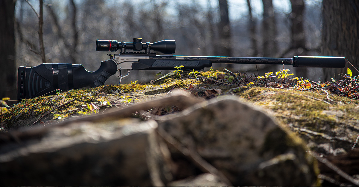 With the suppressor installed, the Encore ProHunter CFT-X feels well-balanced. That would not be the case were it not for the composite barrel configuration. The gun is also easier to carry on the shoulder.