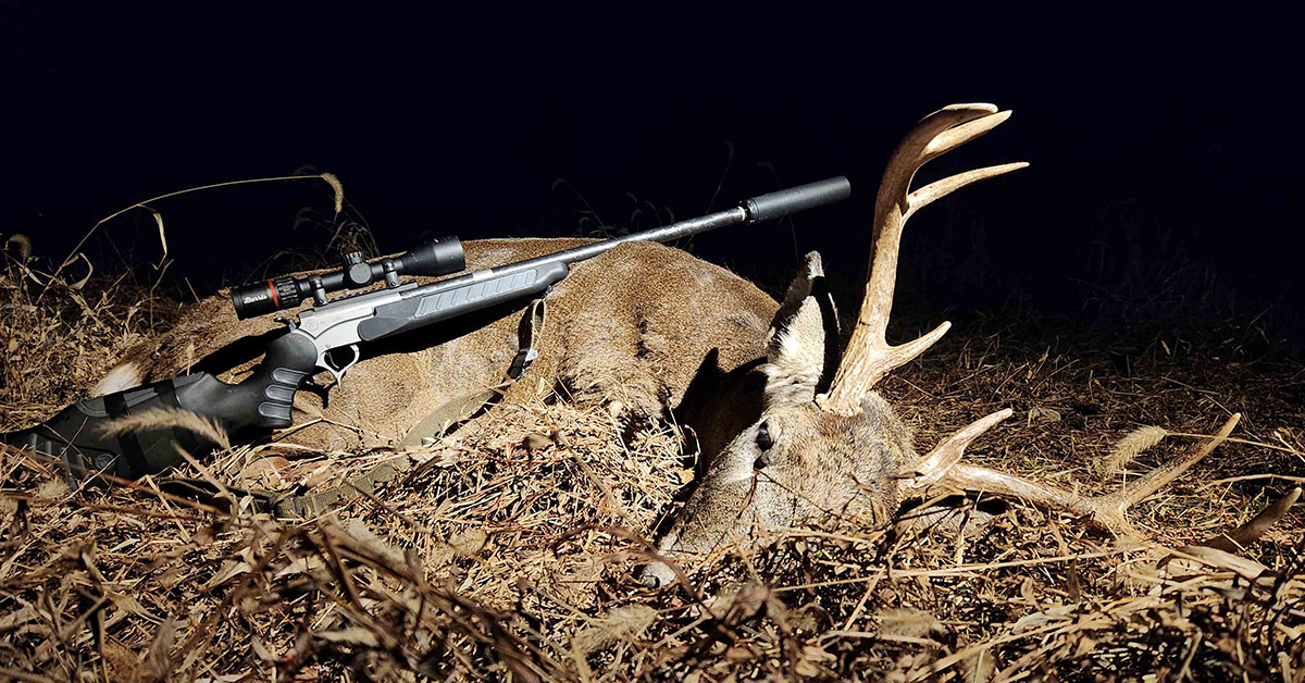 The day before heading to southern Ohio to pit the new ProHunter CFT-X against some wary late-season whitetails, I set up the rifle with a Burris Fullfield 3-12×42 scope and tipped the 350 Legend-chambered barrel with Dead Air’s Primal suppressor.