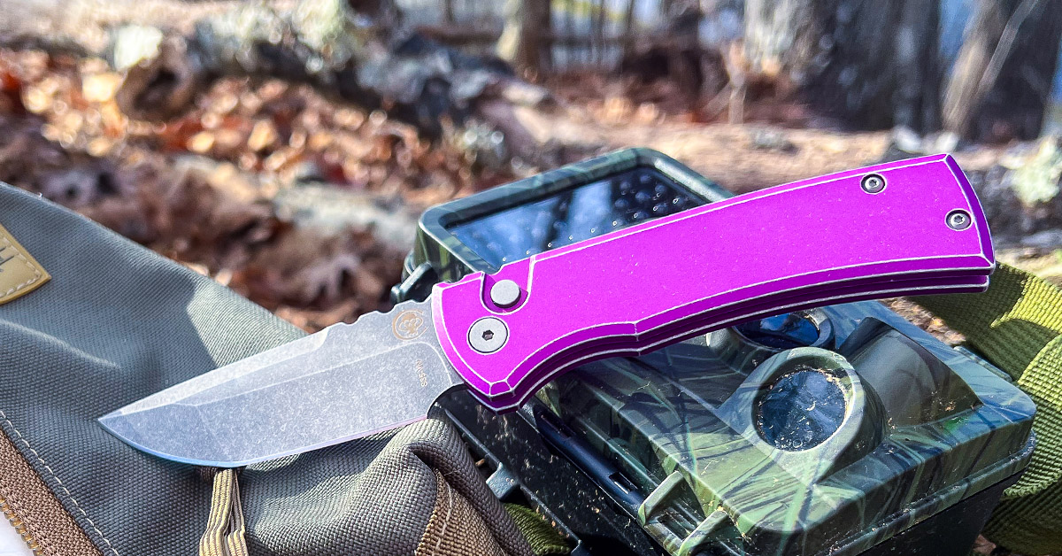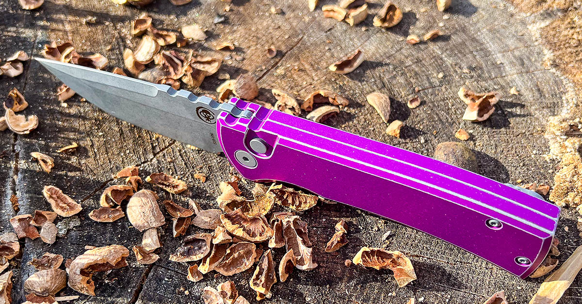 As for handle colors, there are several available for the Redencion 229. The one reviewed here is the battle-worn purple handle finish. It’s an interesting shade of purple with the edges made to look like it’s received a lot of use and carry duties — straight out of the box. The acid washed blade contrasts well with the purple handle. If purple isn’t your style, then that’s OK because this knife is available in the standard handle colors of black, red, blue, and more.