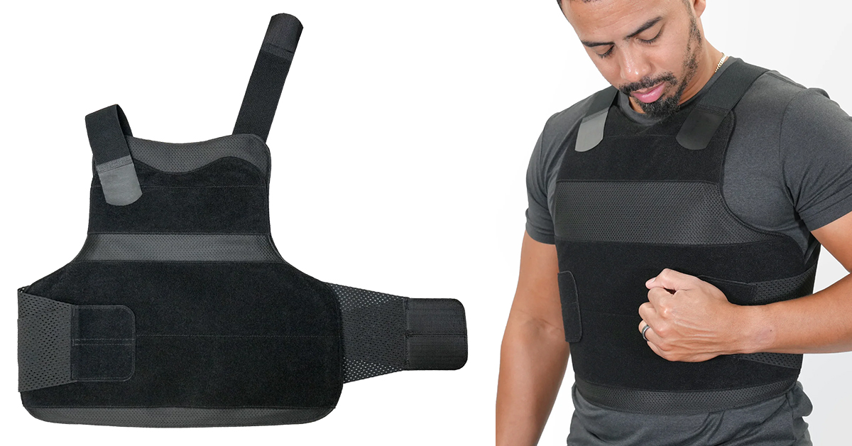 Another base layer armor option is the Everyday Armor T-Shirt 360 by Premiere Body Armor. Built around a compression undershirt, this is the most affordable of the concealable armor options on our list at $379.99. This T-shirt carrier provides full cardiac box coverage with its 7.75×12.75-inch Level IIIA front and back panels and it comes with 6×6-inch side panels. The compression design keeps the panels snug to your torso for maximum concealability and ease of movement.