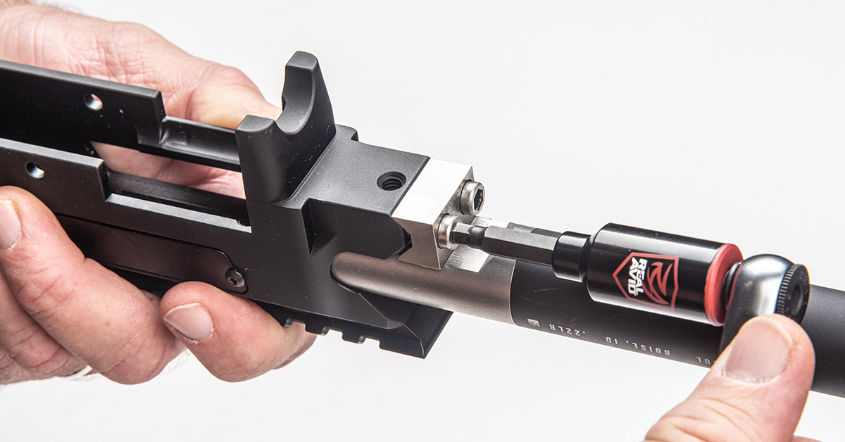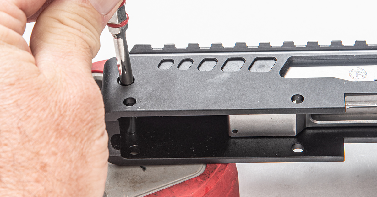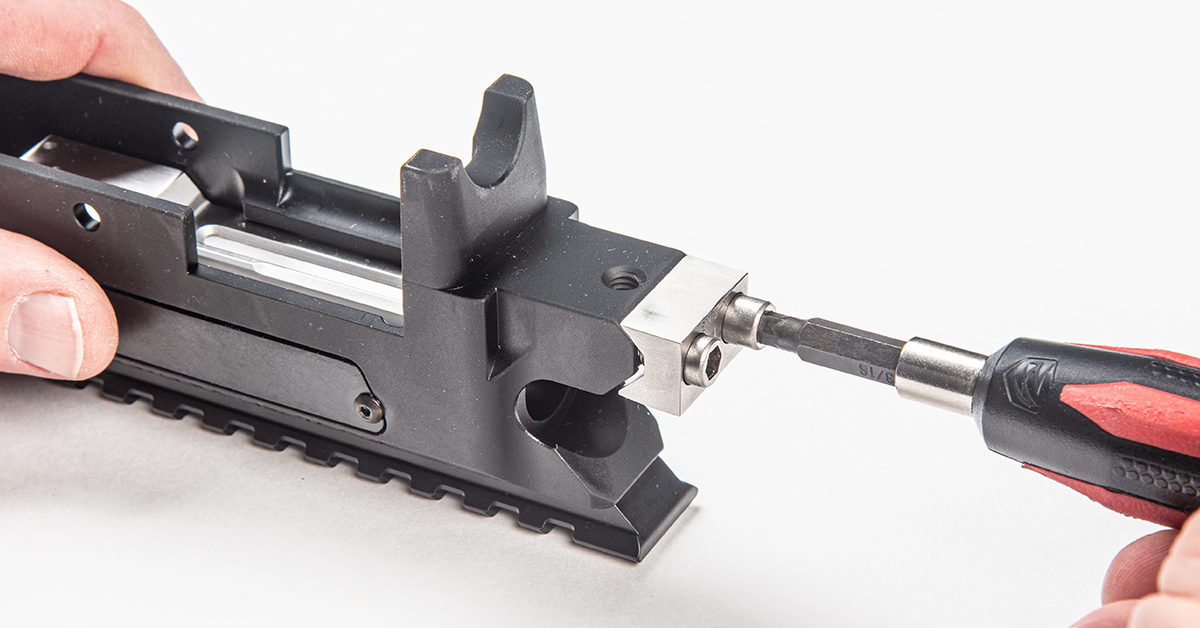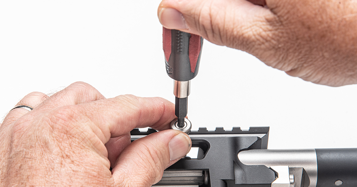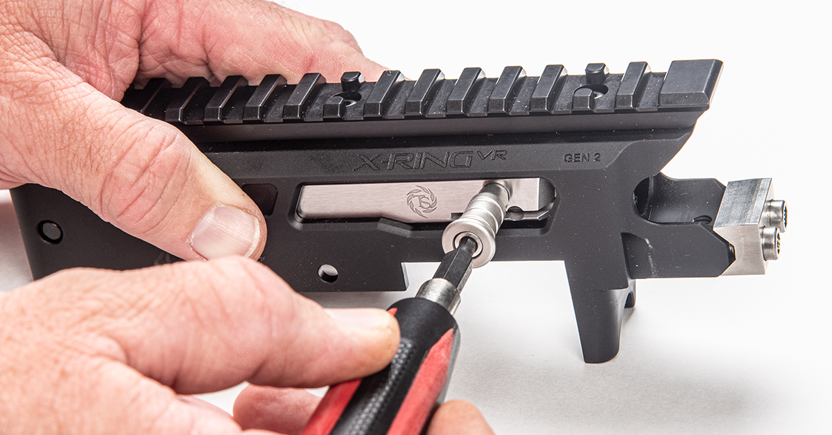 The X-Ring VR receiver assembly comes with the bolt pre-installed. While it is not essential, I recommend removing the bolt for the barrel installation. Start by removing the bolt handle with a hex driver.