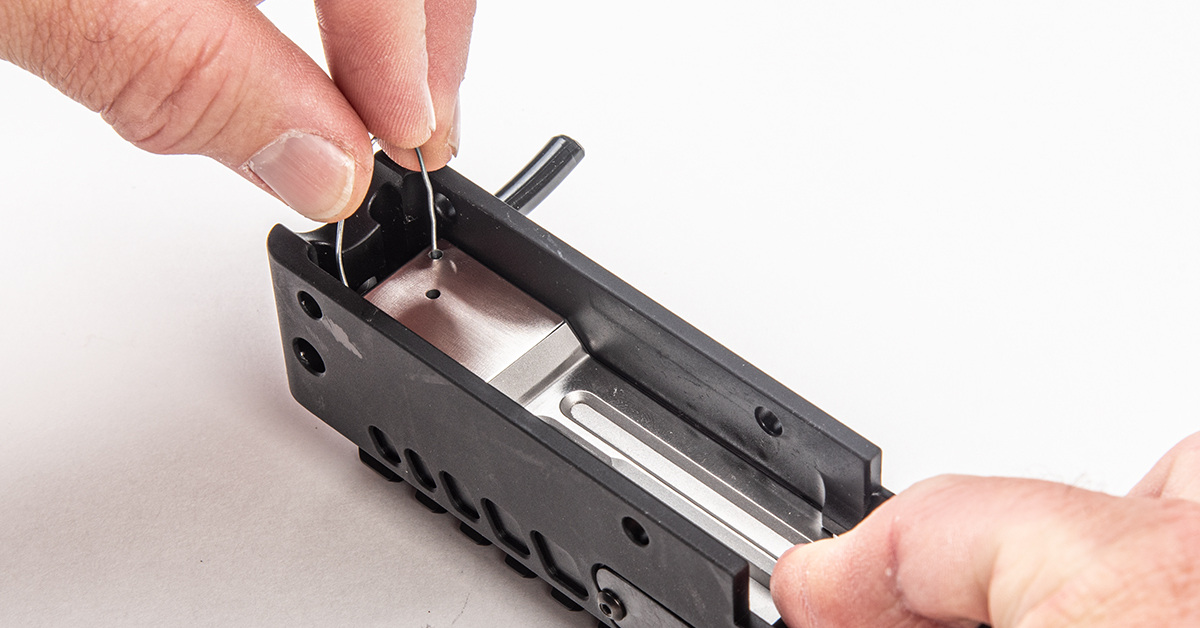 With all burrs removed, begin by test-fitting the trigger box, making sure it fits and that there are no obstructions.