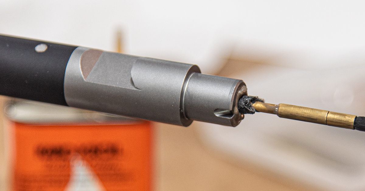With a new barrel, I like to give it a cleaning and light bore polishing prior to installation. After cleaning with a patched jag and brush, I saturated the bore with Kroil and let it set for a few minutes. Next, I saturated a patch with non-embedding JB Bore Cleaning Compound and ran it back-and-forth through the bore about ten times. Lastly, the bore was cleaned to remove all the cleaning compound.